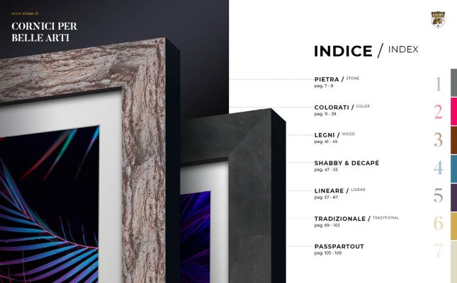 We are pleased to present you our new frames catalog. Inside you will find the entire collection with the inclusion of new profiles and finishes, the result of continuous research and constant passion for our work, offering the possibility of finding the right product for your every need.